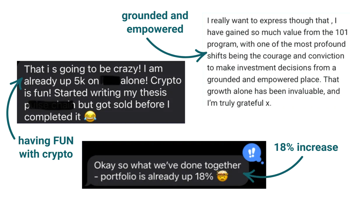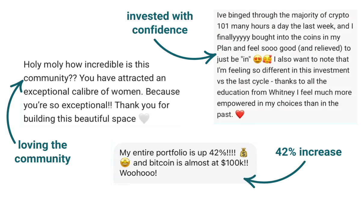 Every day you wait is another day of potential growth and learning lost. Join hundreds of women who are already building their crypto confidence and wealth in a supportive community.