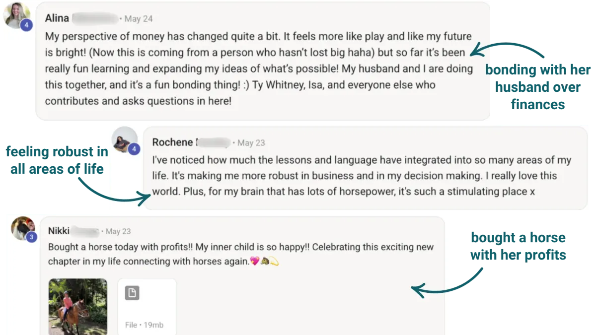 "Whitney’s teaching style is both grounded and expansive. She makes the idea of wealth feel accessible, ethical, and aligned with purpose. Her transparency, realness, and generosity are what drew me in... I’ve started to shift my entire mindset around what’s possible for me."
