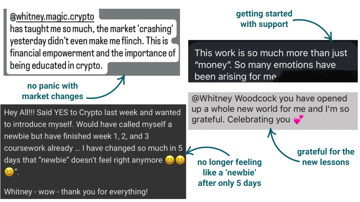 ✓ ONE PRIVATE 30-MIN CALL WITH WHITNEY: Get personalized guidance for your unique crypto situation