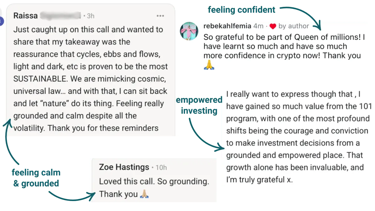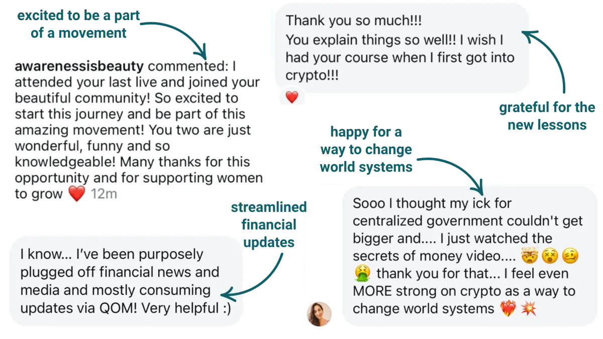 >> You crave a community of women who actually “get you”, who are on the same journey—supporting, learning, and growing together in the crypto space.